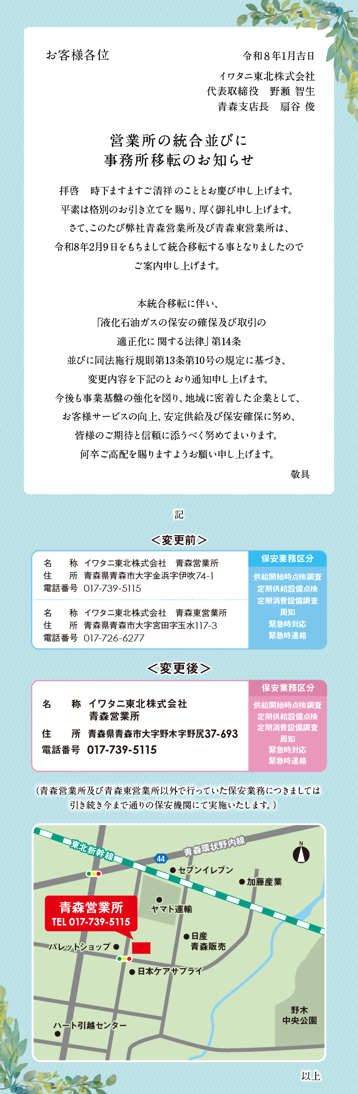 - 営業所統合のご案内